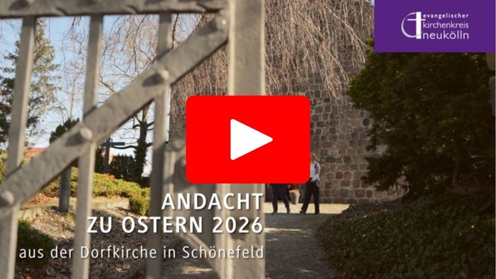Was bedeutet Ostern – mitten im Leben, zwischen Zweifel, Aufbruch und leiser Hoffnung? Unsere diesjährige Videoandacht aus der Dorfkirche Schönefeld geht dieser Frage nach. Superintendent Dr. Christian Nottmeier und Pfarrerin Claudia Mieth nehmen die biblische Geschichte der Emmausjünger in den Blick und verbinden sie mit Erfahrungen aus dem eigenen Leben.
